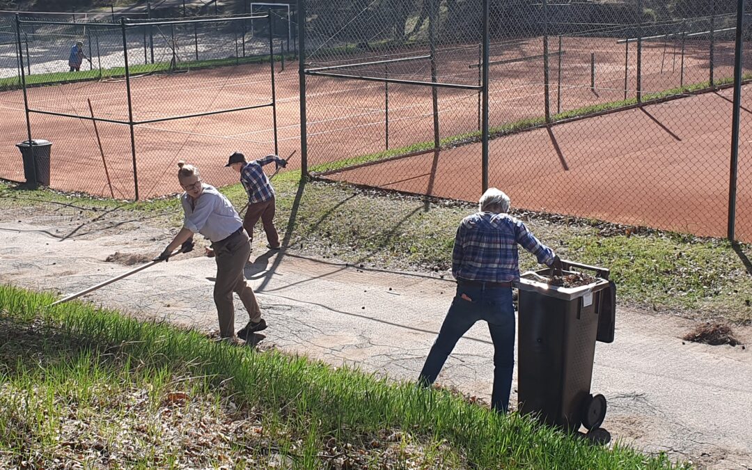 I år hade glädjande många slutit upp vid lördagens städdag. Det var nog 17 till slut som tog sig an finputsningen runt grusbanorna och padelbanorna för att ge Örnäsområdet den sista trimmen inför utomhusstarten.